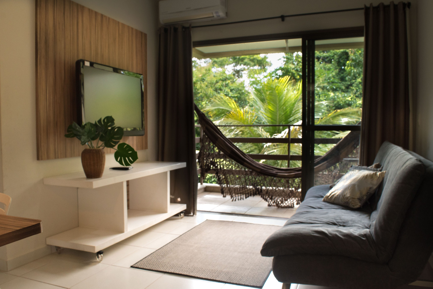 Espaçoso e confortável, o apartamento inclui quarto com cama King, sala, cozinha e banheiro, podendo acomodar até 5 pessoas.